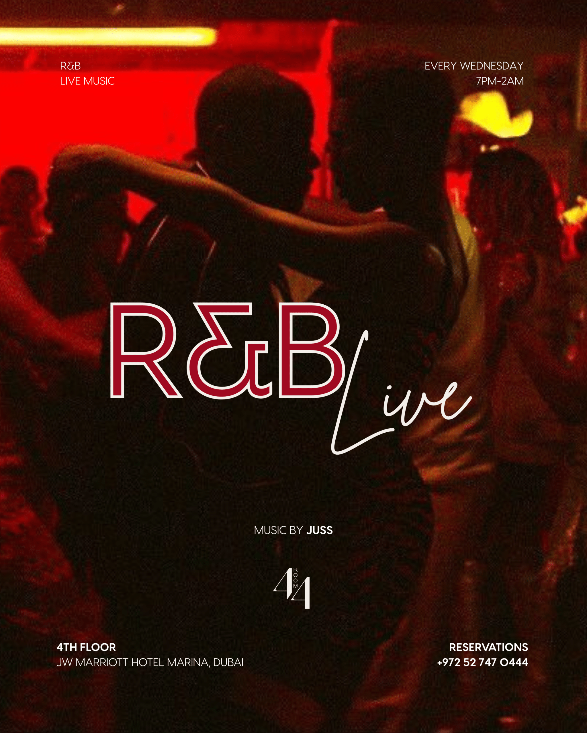 R&B Live Night at Room44 is an elevated midweek dining and live music experience in Dubai, combining soulful live performances with curated set menus and cocktail pairings. The evening balances refined cuisine, live vocals, and a warm lounge atmosphere for guests seeking an intimate alternative to traditional nightlife.